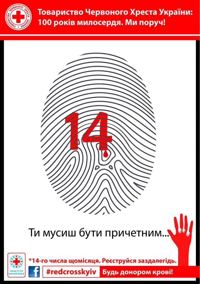 14 серпня (понеділок) з 9.30 до 13.00 всі бажаючі можуть долучитися до здачі крові в рамках щомісячної акції до 100-річчя Товариства Червоного Хреста України.