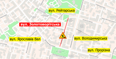 23 травня на вул. Золотоворітській частково обмежать рух транспорту із 08:00 до 20:00
