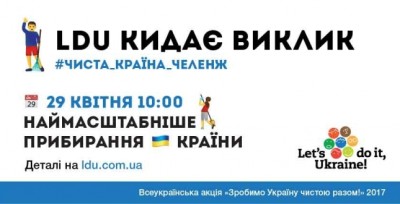 29 квітня по всій території України відбудеться наймаштабніша соціально-екологічна акція «Зробимо Україну чистою разом!» з прибирання та благоустрою засмічених зелених зон, а також місць громадського відпочинку.