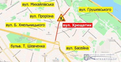 4-5 квітня на Хрещатику частково обмежать рух транспорту