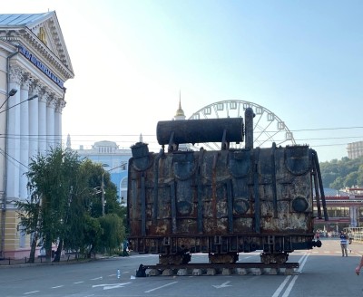 Цей трансформатор, як і десятки інших, постраждав внаслідок чисельних атак ворога на українські теплоелектростанції. Його привезли та встановили в центрі Києва, аби показати українцям, як виглядають енергетичні об’єкти після обстрілів.
