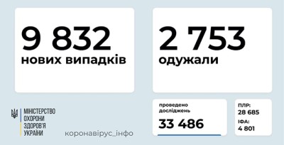 9 832 нових випадки коронавірусної хвороби COVID-19 зафіксовано в Україні станом на 16 листопада