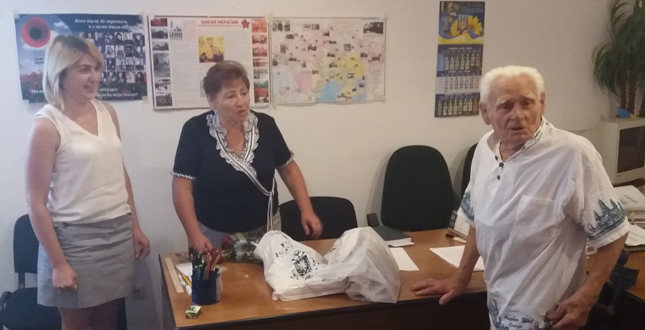 Представники Управління праці та соціального захисту населення і Територіального центру соціального обслуговування спільно з головою первинної організації ветеранів мікрорайону № 1 Галиною Виговською привітали ювіляра, вручили йому подарунки та побажали міцного здоров’я, злагоди, добробуту та благополуччя.