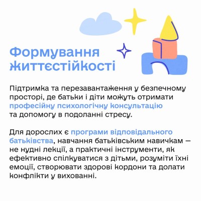 Але навіть найтурботливіші батьки можуть поставати перед труднощами: стрес, відчуття самотності, складнощі у вихованні, війна. Саме тому підтримка батьків є невіддільною частиною турботи про дітей.