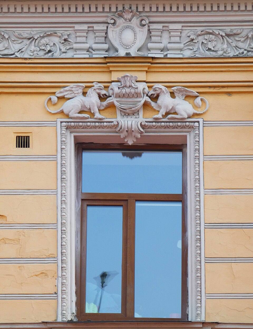 Фасад – це справжня галерея під відкритим небом. Підніміть очі вище: тут і містичні грифони, що тримають сандрики вікон, і маскарони, і витончений меандр. А між вікнами головного фасаду в картушах досі «захована» дата народження будинку – 1898.