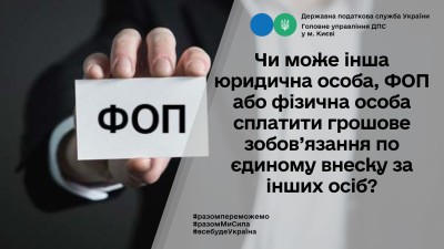 Чи може інша юридична особа, ФОП або фізична особа сплатити грошове зобов’язання по єдиному внеску за інших осіб?