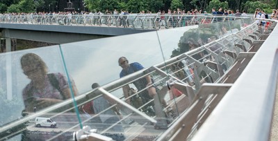 Нагадаємо, міст, що з’єднує два туристичних маршрути – парк «Володимирська гірка» і парк «Хрещатий», було відкрито цьогоріч 26 травня, у День Києва. Він слугує винятково для пішоходів і велосипедистів.