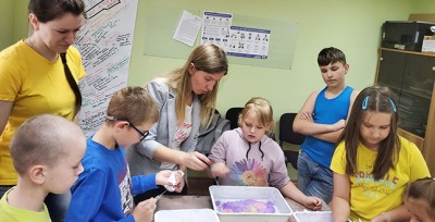 Діти з радістю малювали на воді яскравими фарбами. На деякий час ділахи змогли переміститися у мир фантазій та відволіктися від реалій сьогодення.