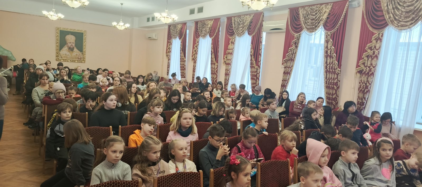Діти з родин-отримувачів послуг Подільського районного в місті Києві центрі соціальних служб відвідали соціоадаптаційний захід у залі семінарії Михайлівського золотоверхого монастиря.
