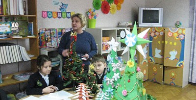 Зустріла школярів ялинкова алея новорічних красунь, виготовлених власноруч бібліотекарями, після чого дітлахи розмірковували над тим, яка ялинка найбільш екологічна.