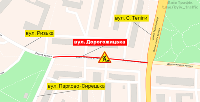 До 18 жовтня на вулиці Дорогожицькій частково обмежено рух транспорту