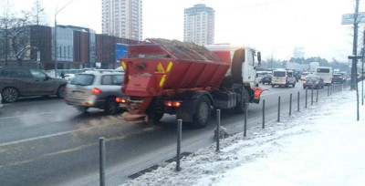 До початку снігопаду в Києві обробляють дороги протиожеледними матеріалами