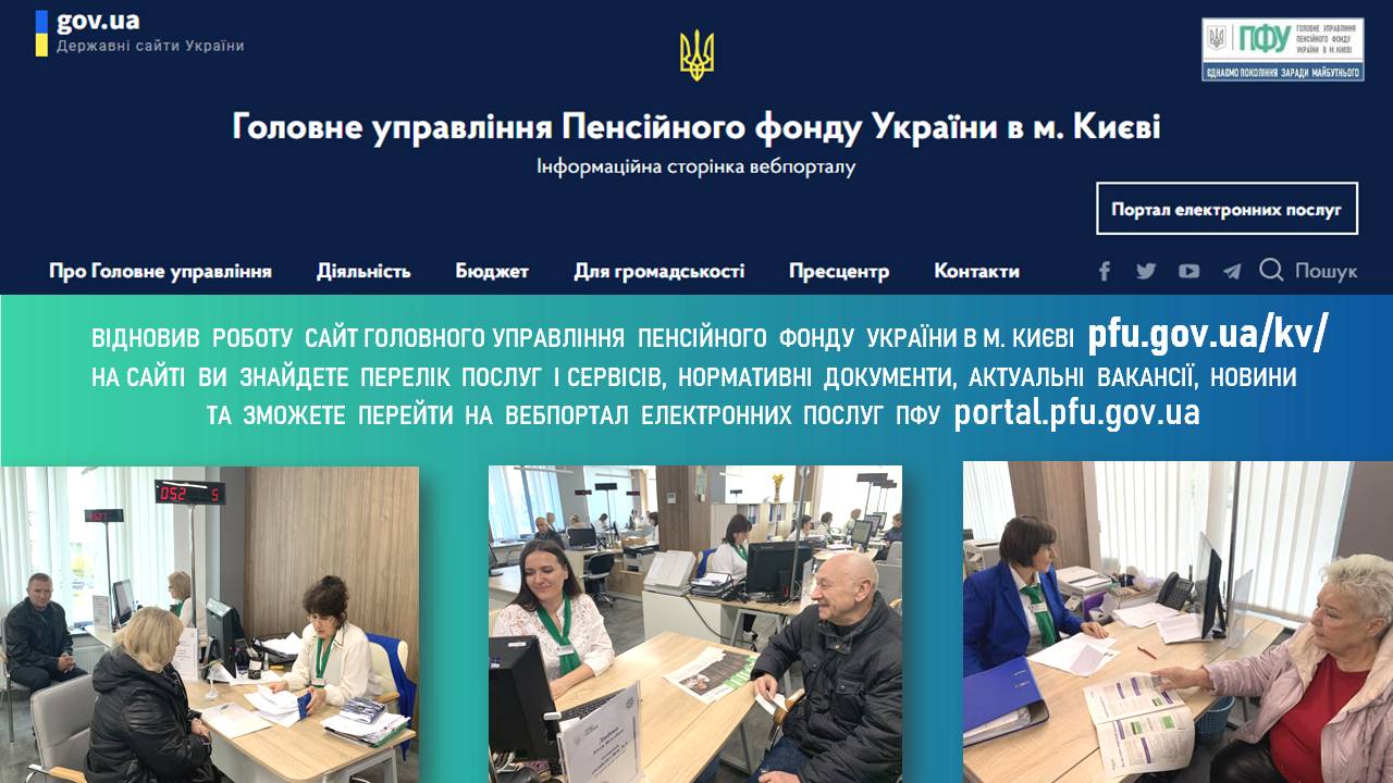 Сайт Головного управління Пенсійного фонду України в м. Києві відновив своюроботу: pfu.gov.ua/kv/