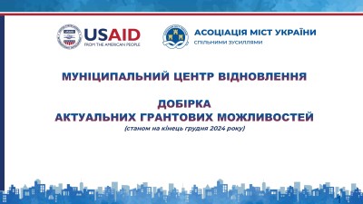 МУНІЦИПАЛЬНИЙ ЦЕНТР ВІДНОВЛЕННЯ ДОБІРКА АКТУАЛЬНИХ ГРАНТОВИХ МОЖЛИВОСТЕЙ (станом на кінець грудня 2024 року)