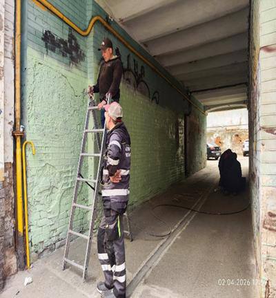 Ліквідували графіті з фасадів будинків.