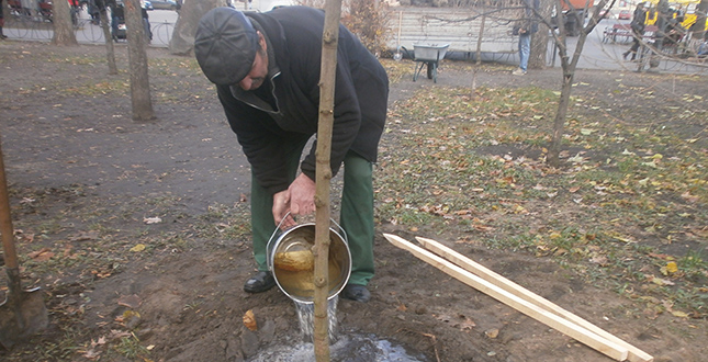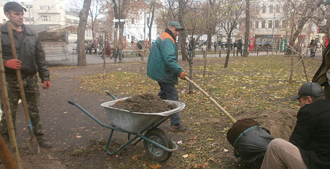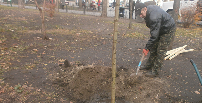 На минулому тижні зеленбудівці у скверах №1 та №2 на Контрактовій площі посадили 9 дерев робінії псевдоакації шаровидної форми.