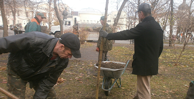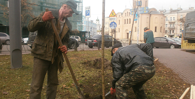 Фахівці КО «Київзеленбуд» Подільського району посадили дерева на Контрактовій площі (фото)