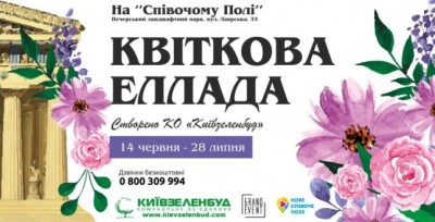 14 червня на території Печерського ландшафтного парку «Співоче поле» відбудеться відкриття виставки квітів у грецькому стилі «Квіткова Еллада», яка триватиме до 28 липня.