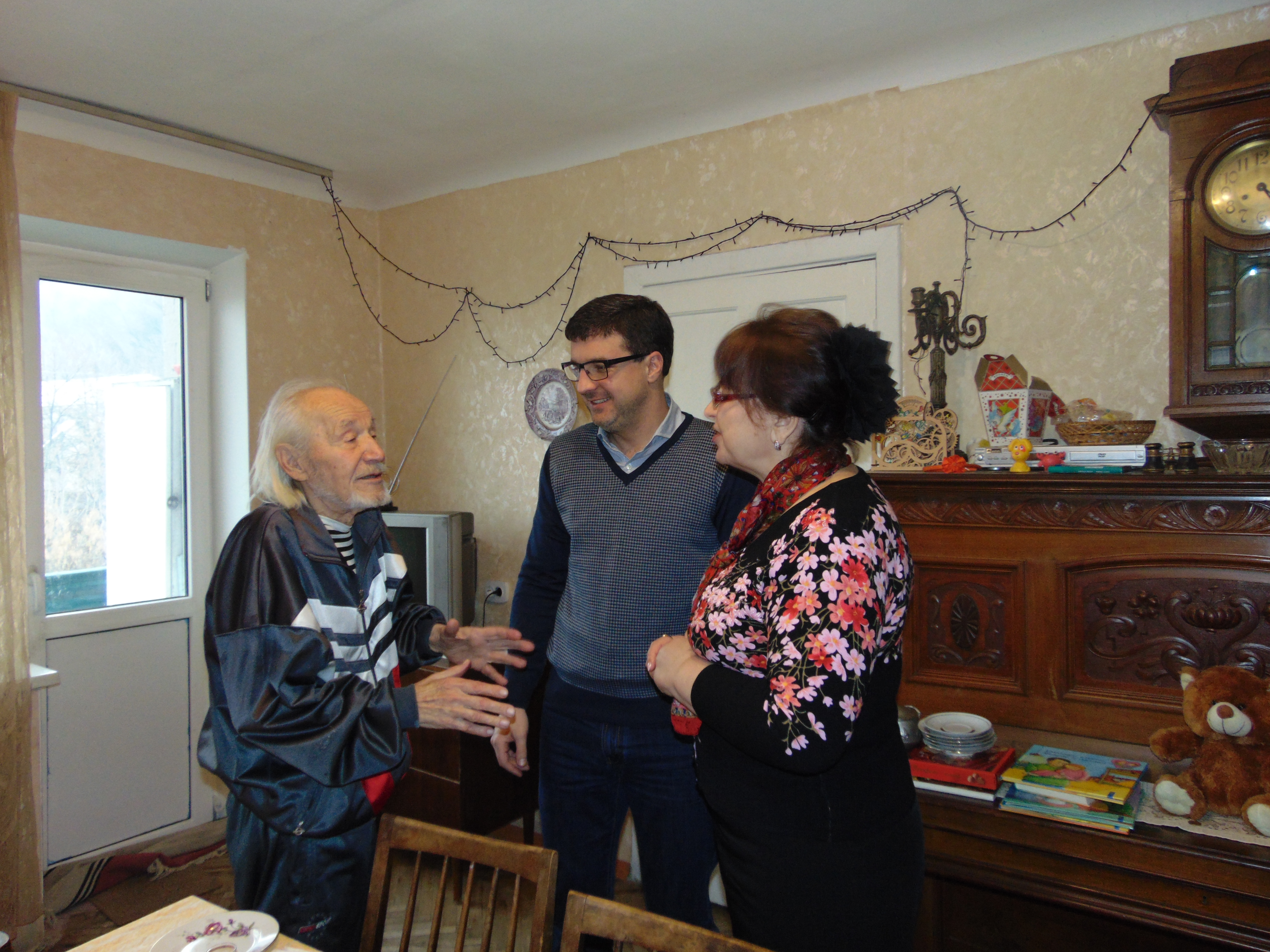 Зустрічаючи гостей, Анатолій Григорович зазначив, що попри всі ювілейні дати з якими його вітали представники влади, вперше у себе дома він приймає голову державної адміністрації. «Мені приємно і почесно, що ви знайшли час і можливість привітати мене з цією скромною датою і, допоки ви мені не розкажете, чим живе наш район, я з квартири вас не випущу», - жартував чоловік.