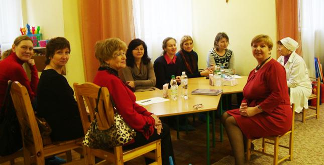 10 лютого в рамках проведення педагогічної хвилі для керівників дошкільних навчальних закладів "Організація медичного обслуговування в дошкільних навчальних закладах", дитячі садочки № 45 ,98, 162, 163, 775, 188, 482, 556, 518, 803, 142 Подільського району гостинно зустріли керівників і медичних працівників Оболонського району.