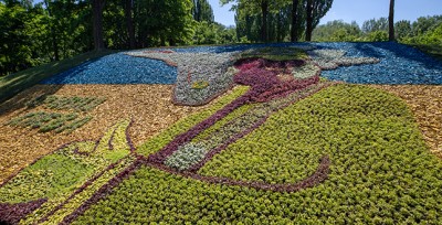 Серед номінантів – майже 30 робіт, зокрема композиція у вигляді знаменитої марки з російським кораблем, квітник «Літак «Мрія», за основу якого взятий дитячий малюнок, а також робота із зображенням матері, яка годує малюка в метро.