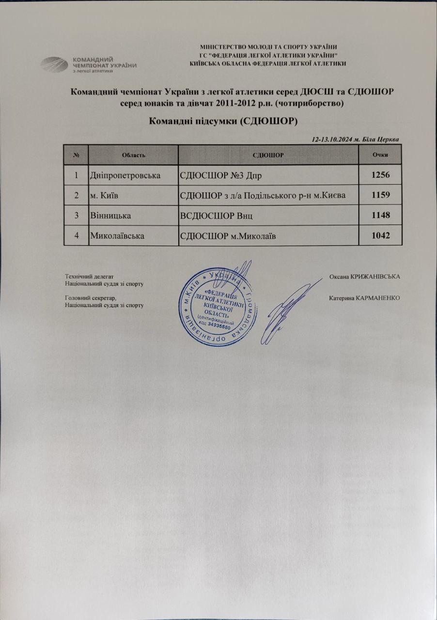 12-13 жовтня 2024 року в місті Біла Церква відбувся командний чемпіонат України з легкої атлетики серед ДЮСШ та СДЮШОР серед юнаків та дівчат 2011-2012 р.н. (чотириборство) м