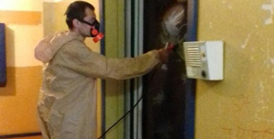 Так, спеціальними дезінфікуючими розчинами "Гіпохлорид Натрію" та "Сантек-Хлор" обробляються сходові клітини, перила, ліфтові кабіни, почтові скриньки, вхідні двері, ручки та предмети загального користування. Наразі продезінфіковано 502 будинки. Щоденно обробляється 100% житлових будинків на території району.