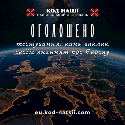 Освітня платформа Національний Фестиваль "Код Нації" запрошує всіх охочих пройти Тестування: "Кинь виклик своїм знанням про Європу", яке триватиме з 9 травня до 10 червня 2025 року.