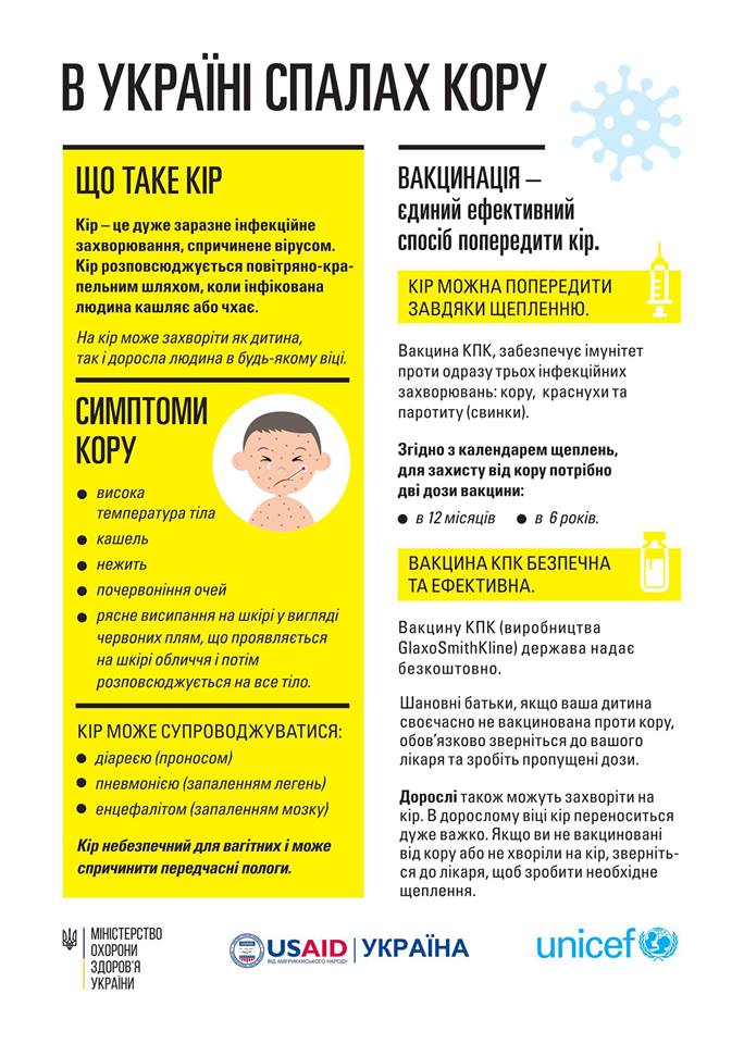 - специфічна вакцинопрофілактика проти кору – єдиний ефективний спосіб попередити кір.