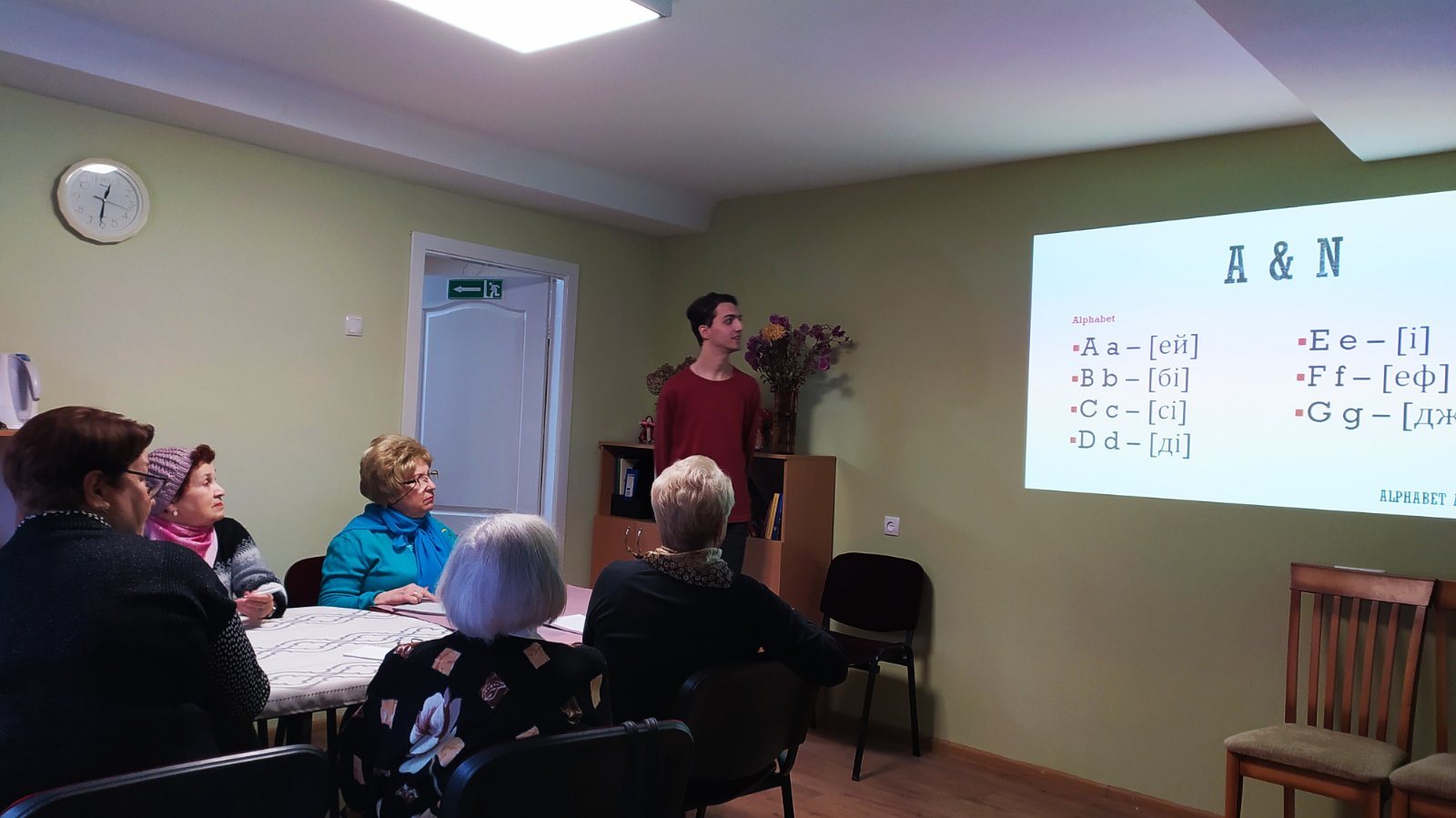 В рамках проєкту «Hello, English!» волонтер Роман Корчемний провів перше ознайомче заняття, на якому підопічні відділення вчились представляти себе та знайомитись з оточуючими. Також у процесі навчання учасники прийняли участь у груповій вправі на рольове спілкування.