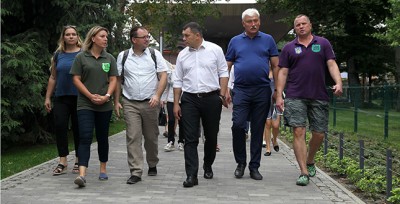 Перший заступник голови КМДА разом із ментором ЄАЗА оглянули реконструйовані вольєри та перебіг робіт на інших об’єктах. Перші результати реконструкції – відкриті три озера, розташовані поблизу центрального входу. Озеро ліворуч від входу – декоративне, з водоспадом та водним каскадом, з мальовничими берегами, на яких облаштовують сад каменів і планують висадити рідкісні рослини. Праворуч від входу – друге озеро, на якому зараз мешкають пелікани. На його берегах споруджена будівля для зимування пеліканів, декорована у вигляді скелі. Третє озеро – для коропів, із заглибленням для зимування риб, водними рослинами для природного очищення та альтанкою. На березі «коропового озера» побудований амфітеатр. Усі три озера мають потужну систему очищення. Природне очищення здійснюється за рахунок біологічних плато з рослин і каменів, а механічне – потужною системою фільтрів, які розташовані в підвальному приміщенні амфітеатру.