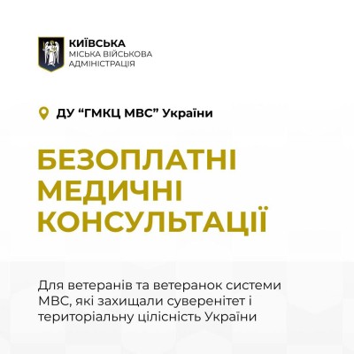 На базі Головного медичного клінічного центру МВС України запустили програму безоплатних медичних консультацій для звільнених зі служби ветеранів та ветеранок системи МВС, які брали безпосередню участь в АТО, ООС та у заходах із захисту України від збройної агресії рф.