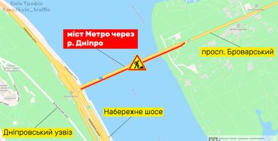 На мосту Метро частково обмежать рух транспорту із 21:00 1 жовтня до 17:00 4 жовтня