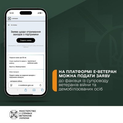 На платформі е-Ветеран можна подати заяву до фахівців із супроводу ветеранів війни та демобілізованих осіб.