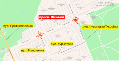 До 17:00 22 квітня на просп. Лісовому частково обмежено рух. Про це повідомляє КК «Київавтодор».