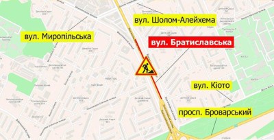На вул. Братиславській частково обмежать рух із 21:00 22 червня до 4:00 23 червня