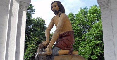 Невідомі особи, під час Пасхальних вихідних, поглумилися над фонтаном «Самсон», що на Контрактовій площі, пофарбувавши скульптуру у золотавий колір.