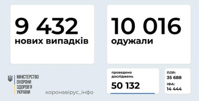 За даними Центру громадського здоров’я, станом на 1 січня в Україні зафіксовано 9432 нових підтверджених випадків коронавірусної хвороби COVID-19 (з них дітей – 338, медпрацівників – 446). Кількість активних хворих становить 325 790 осіб.