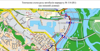 Робота автобусів маршруту № 114 після відновлення руху о 15:00 у разі закриття руху по вул. Хрещатик до закінчення заходу організовано на двох ділянках: «вул. Милославська – Європейська площа» та від залізничного вокзалу «Центральний» до ст. м. «Площа Льва Толстого».
