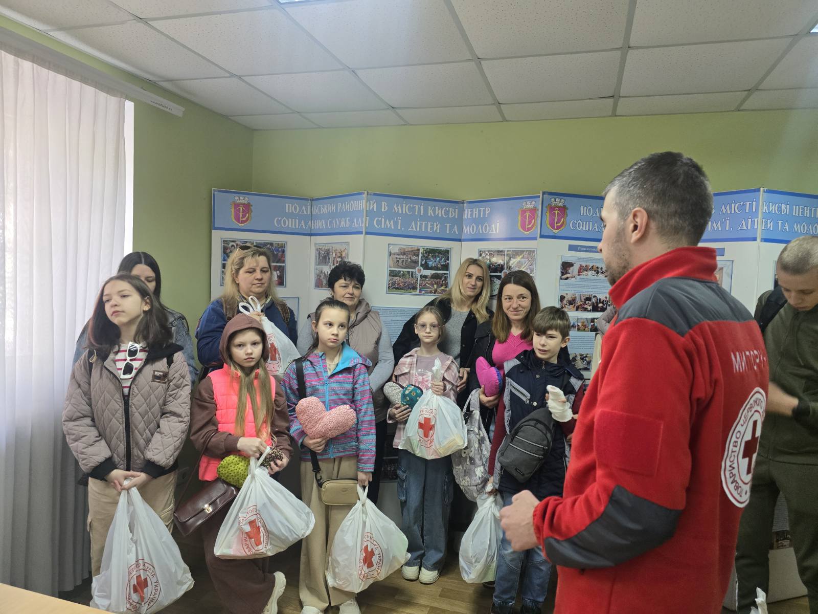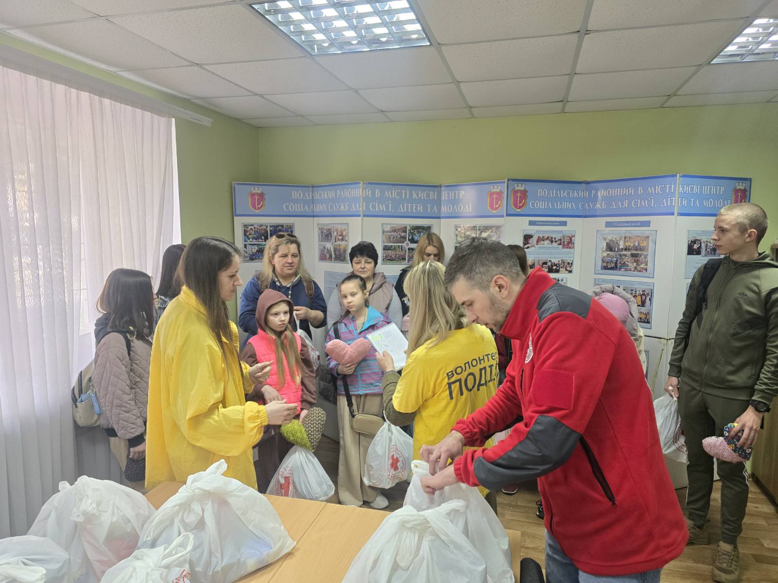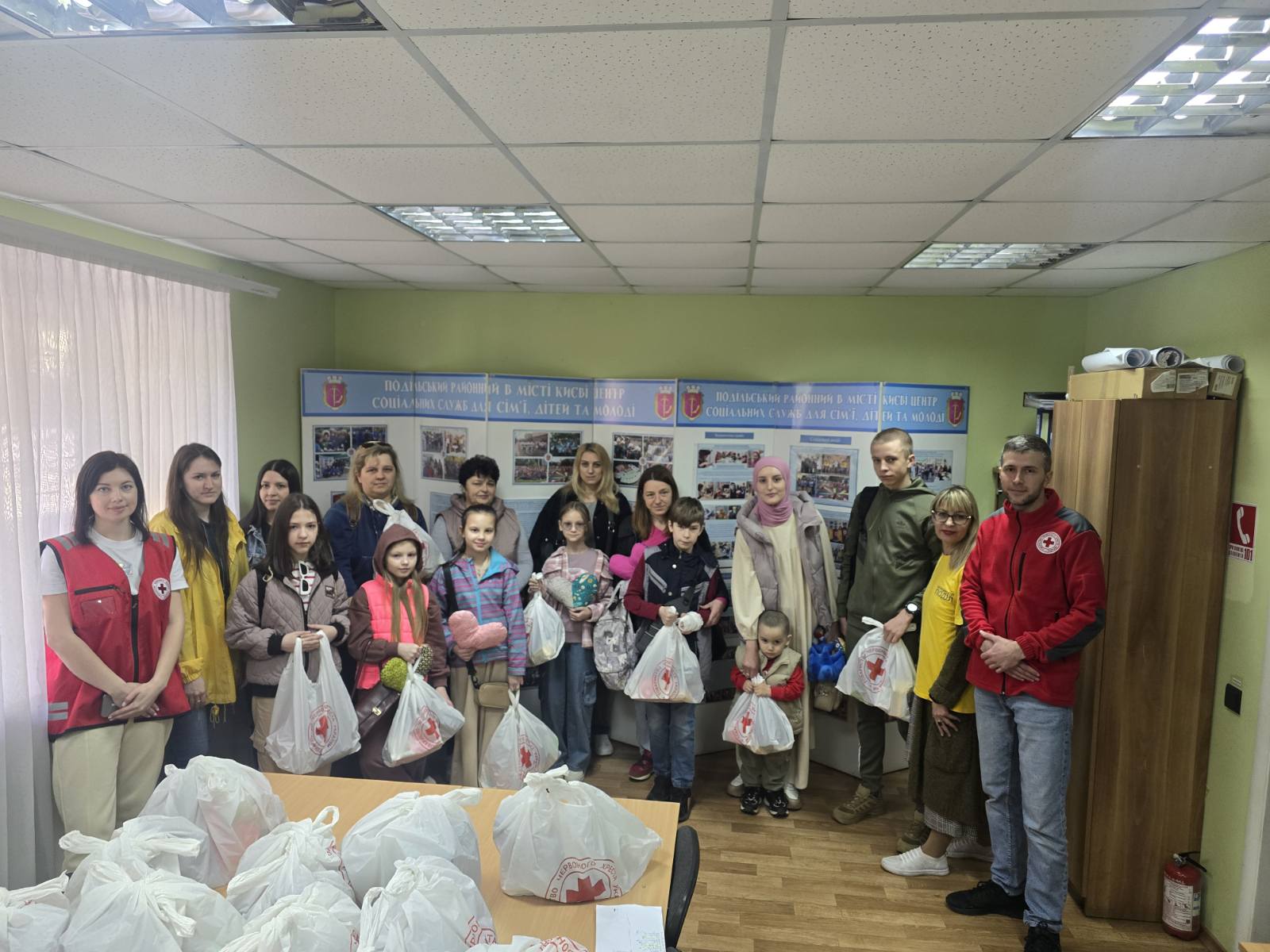 До Великодніх свят фахівці Подільського районного в місті Києві центру соціальних служб разом з представниками Подільської районної організації Товариства Червоного Хреста України в місті Києві привітали пасками та смаколиками 30 дітей, сім’ї яких опинилися в складних життєвих обставинах та з внутрішньо переміщених сімей.