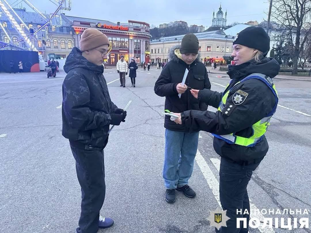 Передноворічні вечори на історичному Подолі - ювенальні поліцейські привітали киян з прийдешніми святами та вкотре нагадали найменшим з них про безпеку в темну пору доби