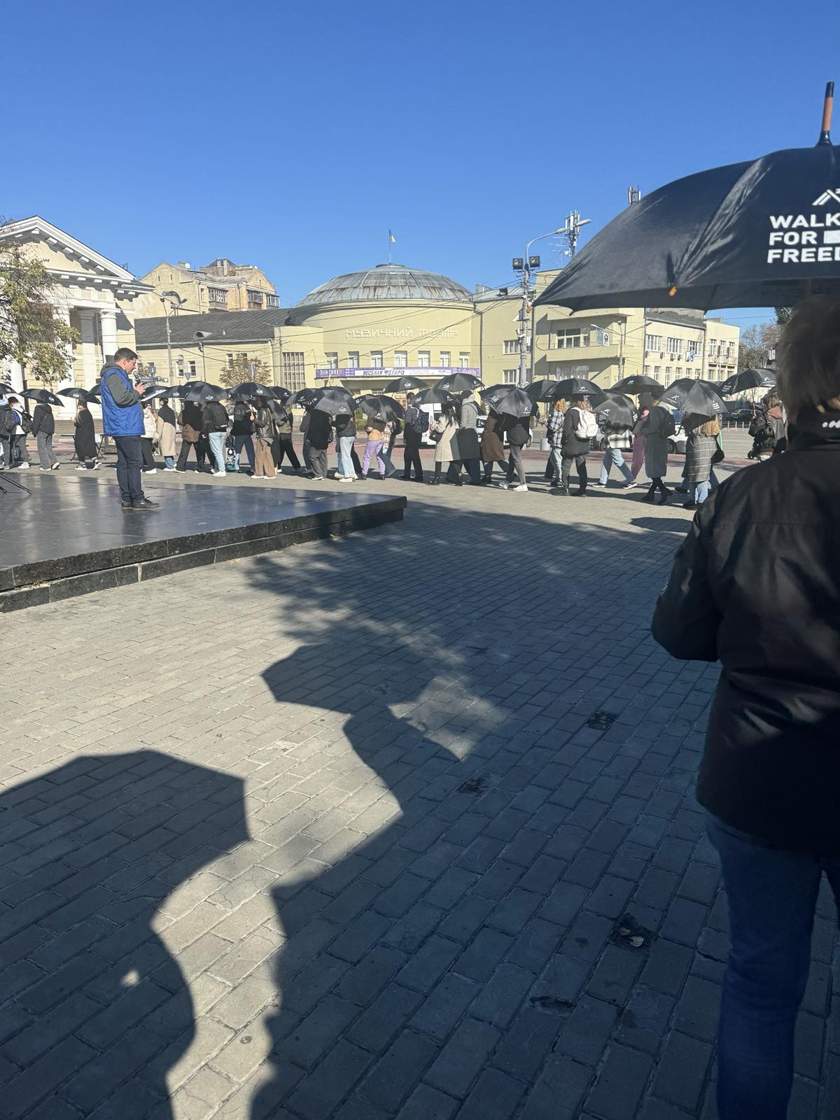 Сьогодні 17.10.2024 представники Управління соціальної та ветеранської політики Подільської районної в місті Києві державної адміністрації та Подільського районного в місті Києві центру соціальних служб взяли участь у міській акції до Європейського дня боротьби з торгівлею людьми. Учасники акції пройшлись мовчазною ходою Walk for Freedom/Хода за свободу на Контрактовій площі.