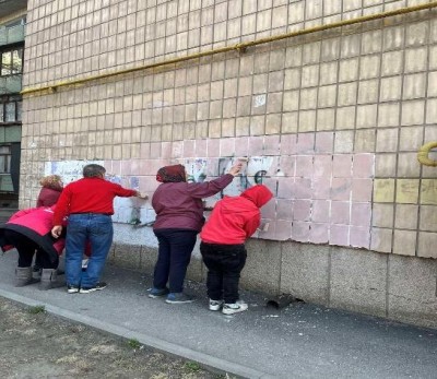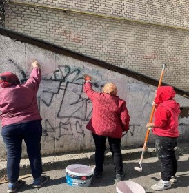 Продовжується робота з очищення фасадів будівель від графіті у Подільському районі міста Києва