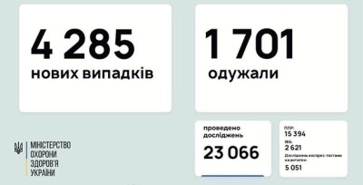 Станом на 01 березня в Україні зафіксовано 4 285 нових підтверджених випадків коронавірусної хвороби COVID-19