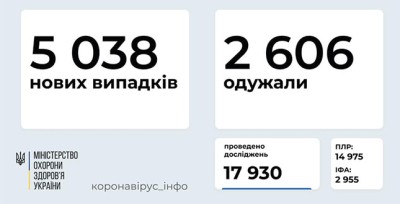 Станом на 2 січня в Україні зафіксовано 5038 нових підтверджених випадків коронавірусної хвороби COVID-19