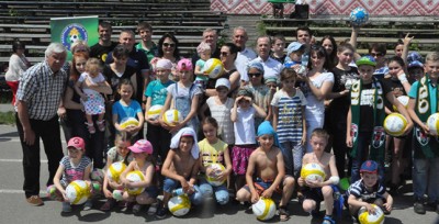 Ну а надалі на футбольному полі розпочалося найцікавіше – “Відкриті розважальні футбольні школи” , учасниками, яких стали понад 250 дітей віком від 7 до 15 років з 24 шкіл міста Києва. 12 квадратів з різномантіними завданнями під захоплюючий музичний супровід пролетів як одна хвилина! Наостанок, малеча отримала в подарунок солодкі смаколики, люб’язно надані від компанії “Украгробізнес”. Без перебільшення, можна констатувати, що свято вдалося….Всі залишилися задоволені, але, найголовніше, що маленькі пацієнти “Охматдиту” відчули, що вони у своїй мужній боротьбі не одні, ми всіма силами намагалися продемонструвати любов та підтримку нашим новим друзям!
