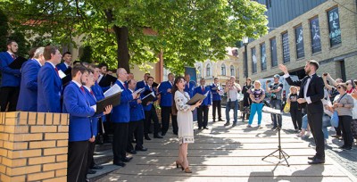 Зокрема, сьогодні, 25 травня, святкова програма розпочалася виступом Муніципальної академічної чоловічої хорової капели ім. Л. Ревуцького, яка провела музичну екскурсію локаціями Андріївського узвозу.