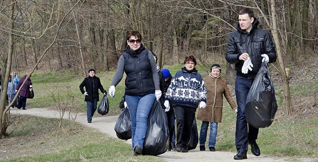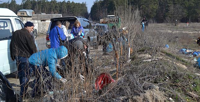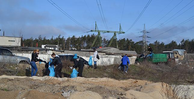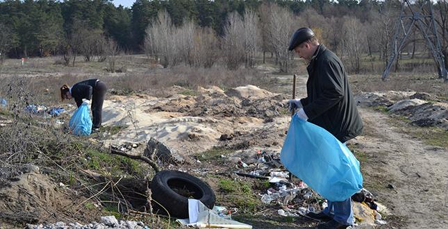 У рамках весняного двомісячника з благоустрою, озеленення та поліпшення санітарного стану району, жителі, активісти, представники громадських організацій, студенти очистили територію навколо Синього озера від зимового бруду.