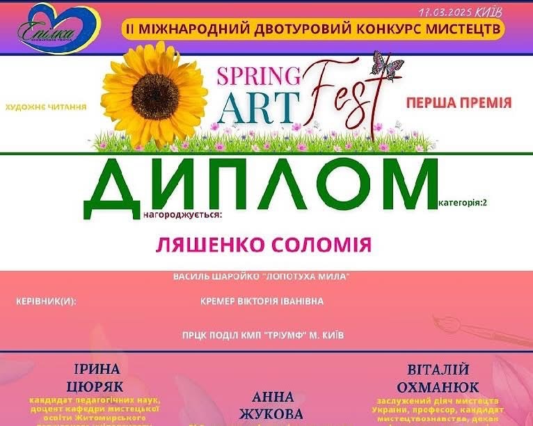 Наші вітання Катерині Пʼятак та Соломії Ляшенко з перемогою у міжнародному конкурсі мистецтв «Spring art fest»🌺
