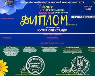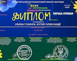 Вітаємо Олександра Кутира та Глафіру Ільїну зі здобуттям І премії у багатожанровому конкурсі-фестивалі мистецтв «Весну зустрічаємо, таланти величаємо»💐